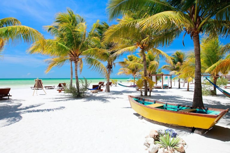 Sombreros de colores y sol a raudales te acompañan desde Isla Holbox hasta un glamping en la Riviera Maya. Pon los pies en la arena y vive el comienzo de tu momento caribeño en Holbox.